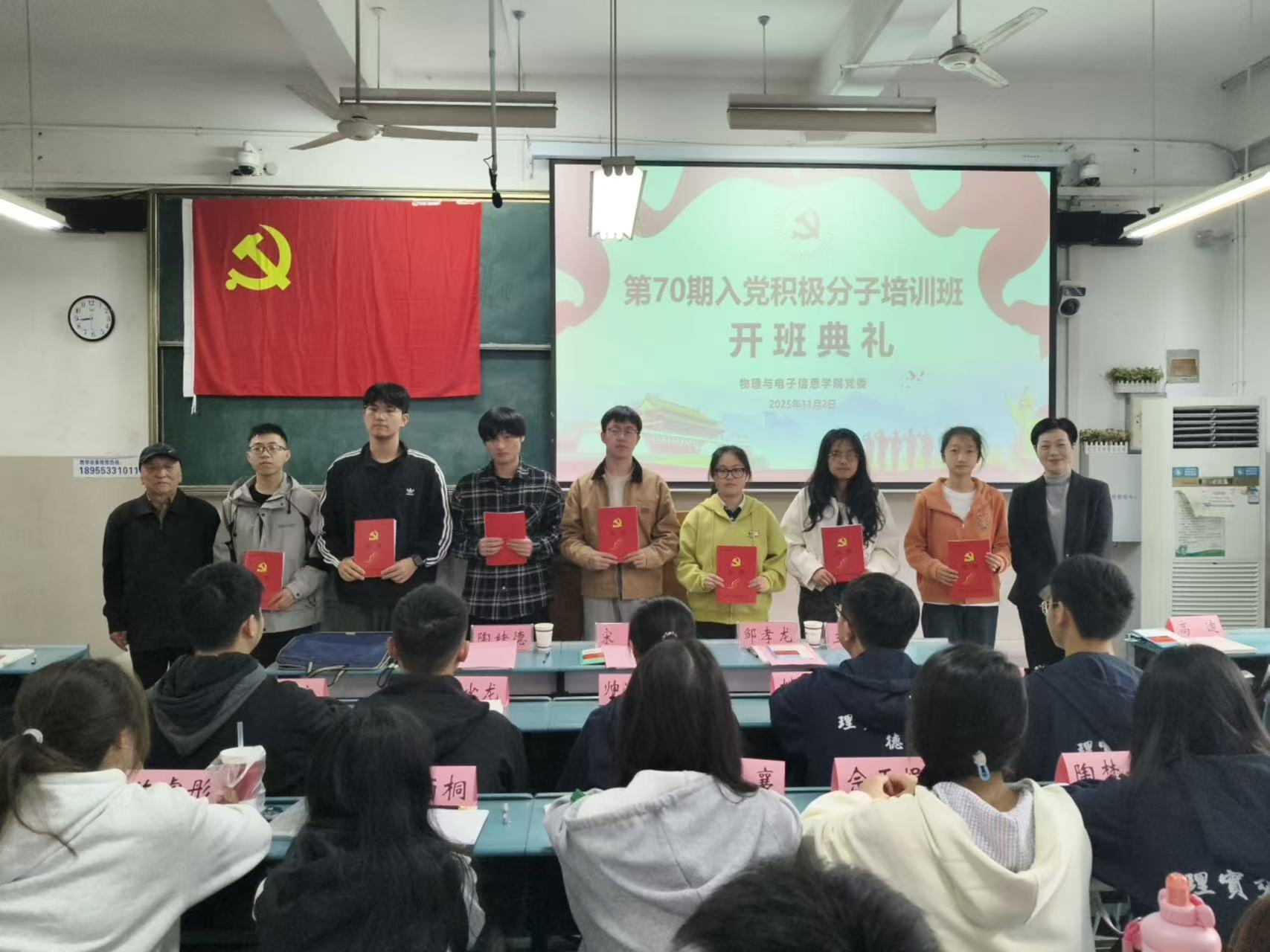 11月2日至6日,物电学院分党校第70期(院第38期)入党积极分子培训班圆满完成培训任务,来自学院各年级各专业的125名入党积极分子在丰富多彩的学习和实践课程中筑牢了信仰之基,提升了理论素养,坚定了入党信心。