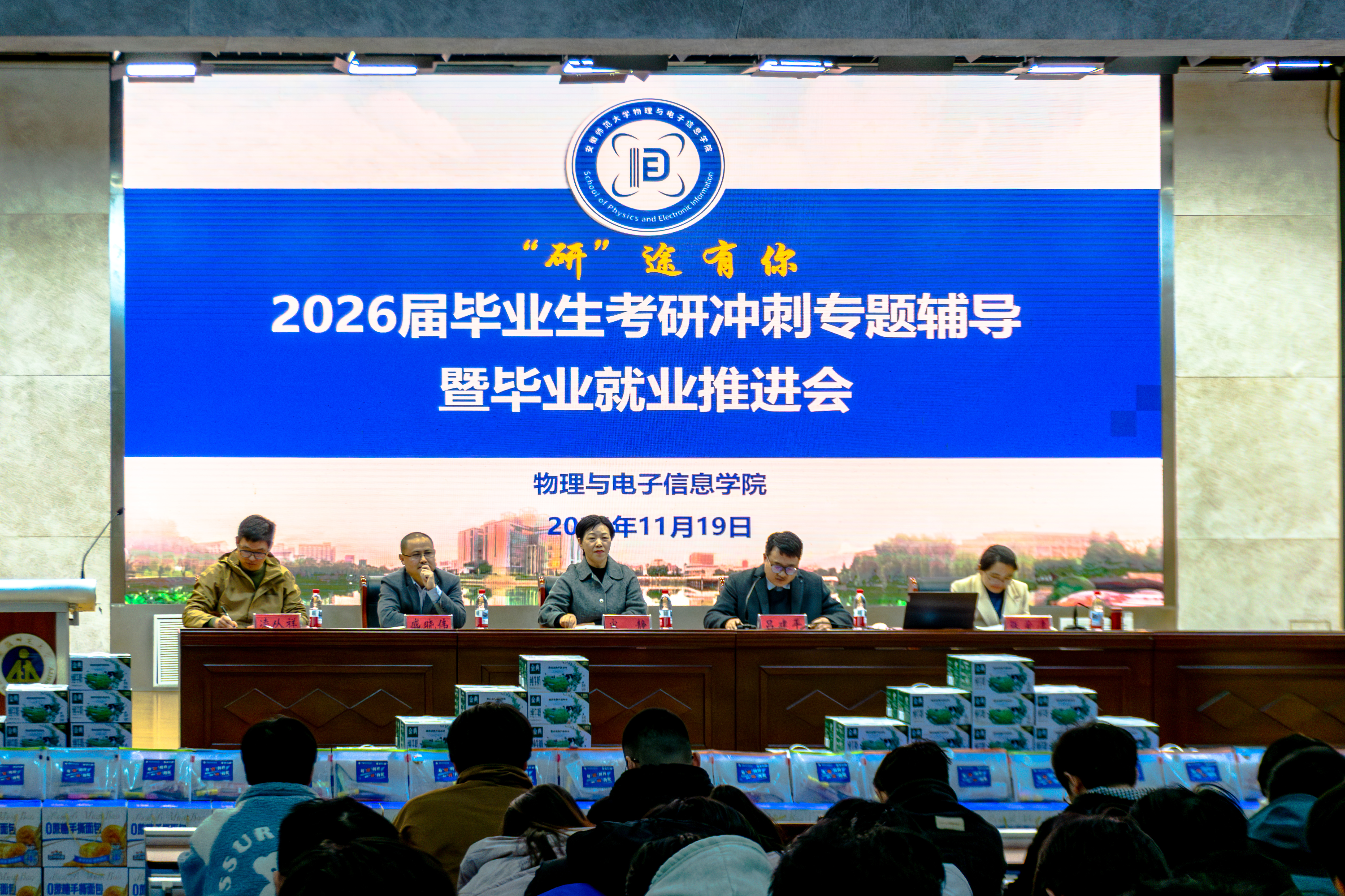与“理”同行,一“研”为定。为帮助考研学子缓解备考压力、增强冲刺信心,全面推进2026届毕业生考研与就业工作,11月19日下午,物电学院于理科大楼报告厅召开考研冲刺专题辅导暨就业推进会。镜湖区人民武装部政委严胜中、学院党政领导、毕业班辅导员及全体毕业生参加会议,会议由学院党委副书记凌从祥主持。