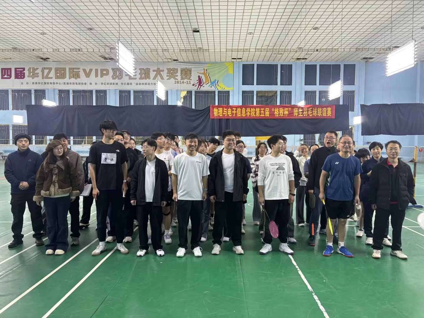 为深化体育育人内涵,搭建多元导学交流平台,11月29日下午,物理与电子信息学院在赭山校区羽毛球场成功举办第五届“格致杯”师生羽毛球联谊赛。本次活动由物电学院研究生会精心策划,以“羽球为媒,师生同行”为主题,吸引全院数十位导师与研究生组队参赛,在运动赛场续写“格致杯”的五载温情与拼搏故事。