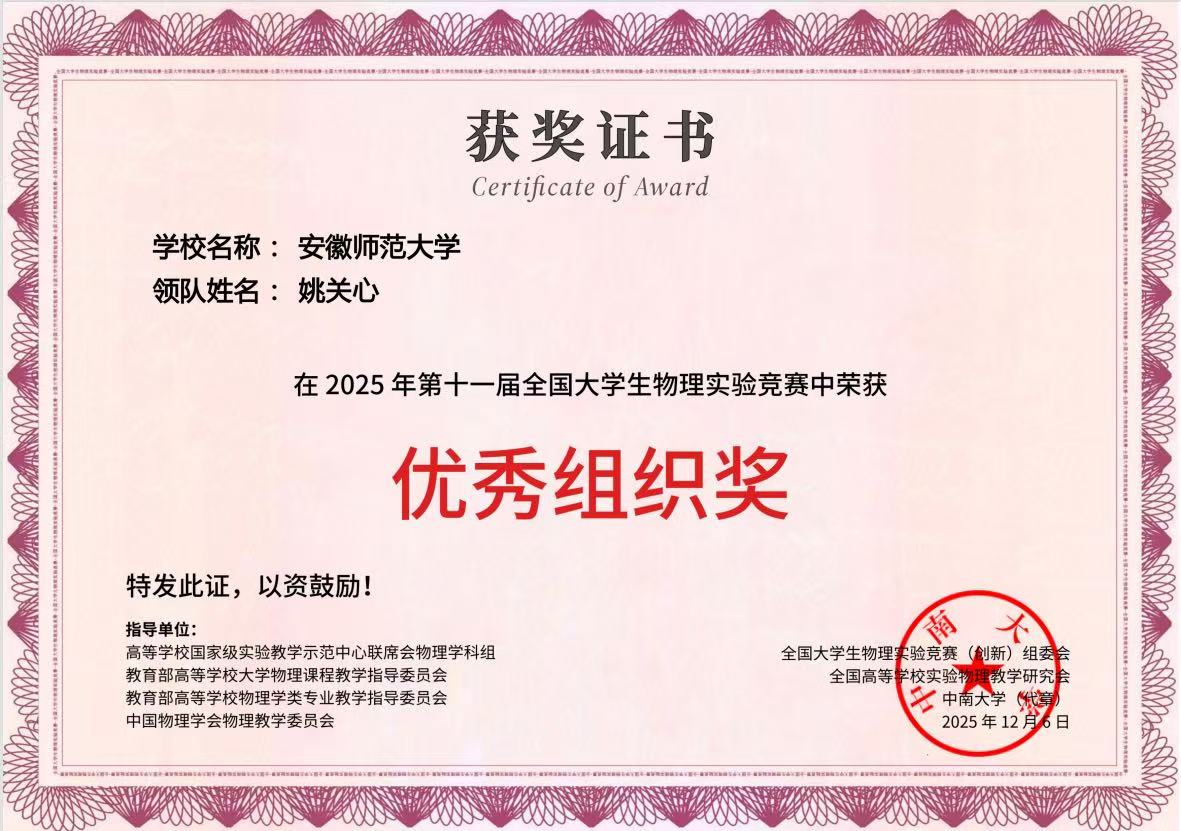 物电学院一贯高度重视本科生创新能力培养,此次竞赛取得的优异成绩,是对学院创新人才培养模式的成功检验,也是学校持续深化实验教学改革、有效提高物理教学质量的重要体现。