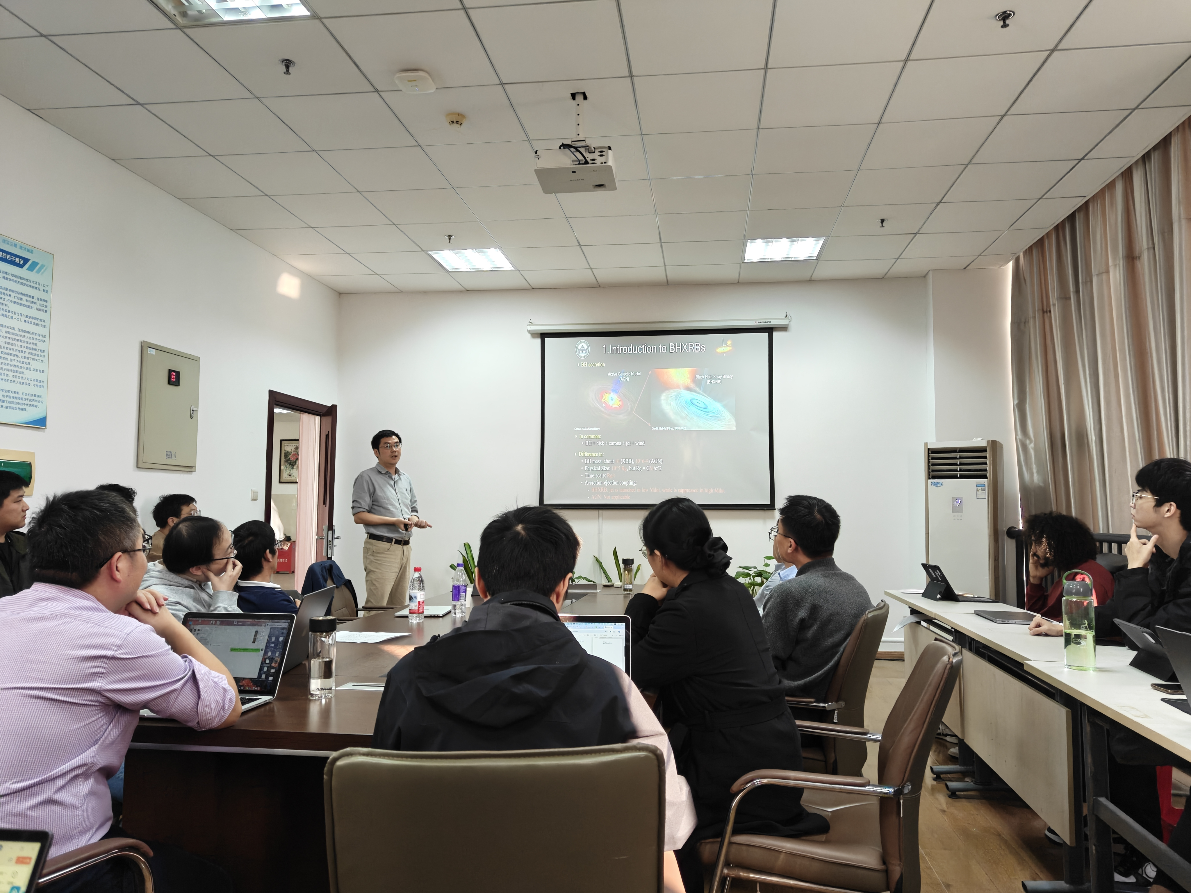 应物理与电子信息学院邀请,武汉大学教授游贝于11月12日来校进行学术交流,并做了题为《Formation of a magnetically arrested disk (MAD) in a black hole X-ray binary》的学术报告。报告会在物电学院429会议室举行,物电学院教授舒新文主持报告会,相关专业师生参加了此次报告会。