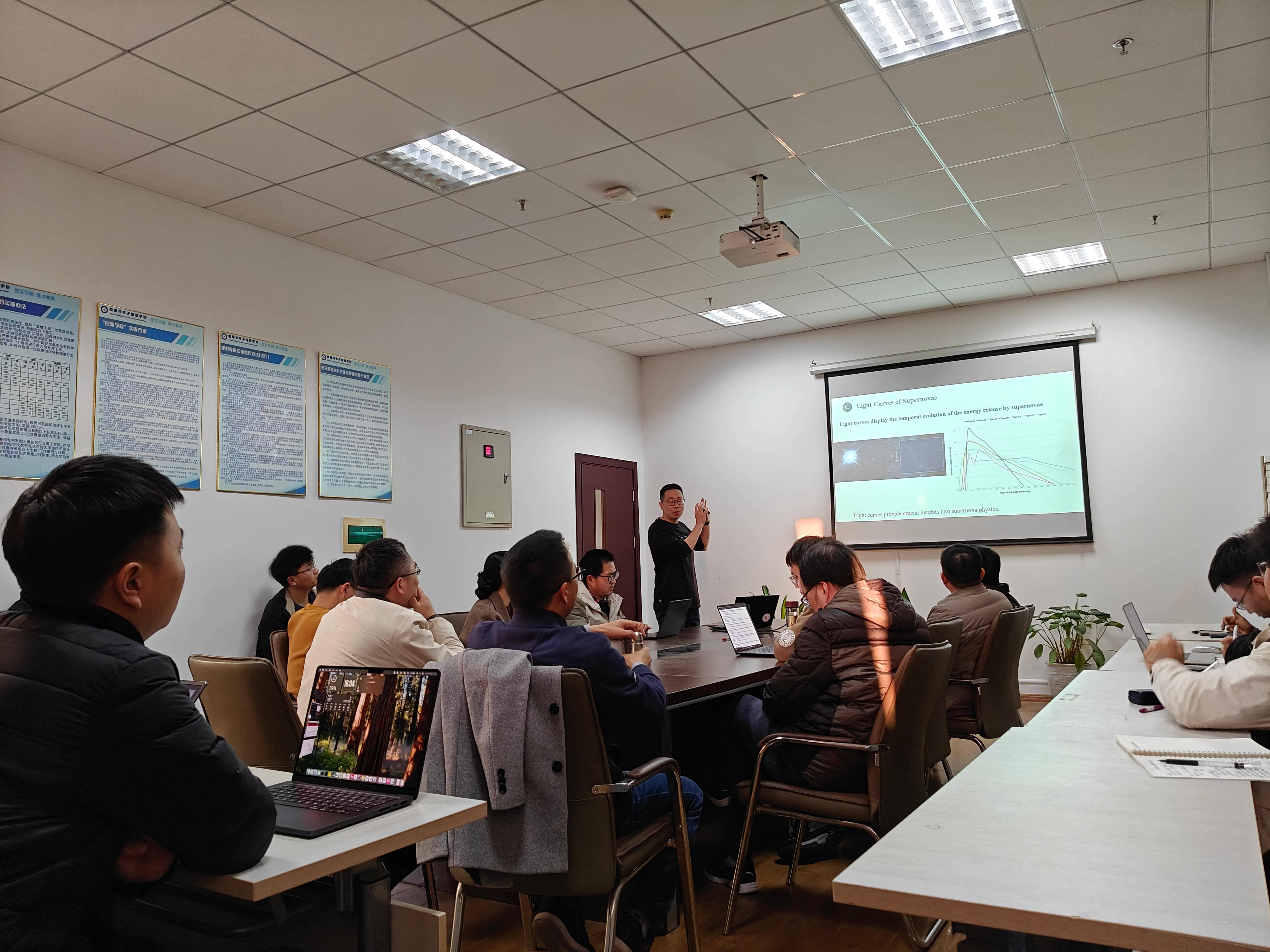 应物理与电子信息学院邀请,华中师范大学副研究员刘良端于2025年11月26日来校进行学术交流,并做了题为《时域天文中光学暂现源光变曲线的研究》的学术报告。报告会在物电学院429会议室举行,会议由物电学院副教授彭方坤主持,学院天体物理团队师生参加了本次报告会。