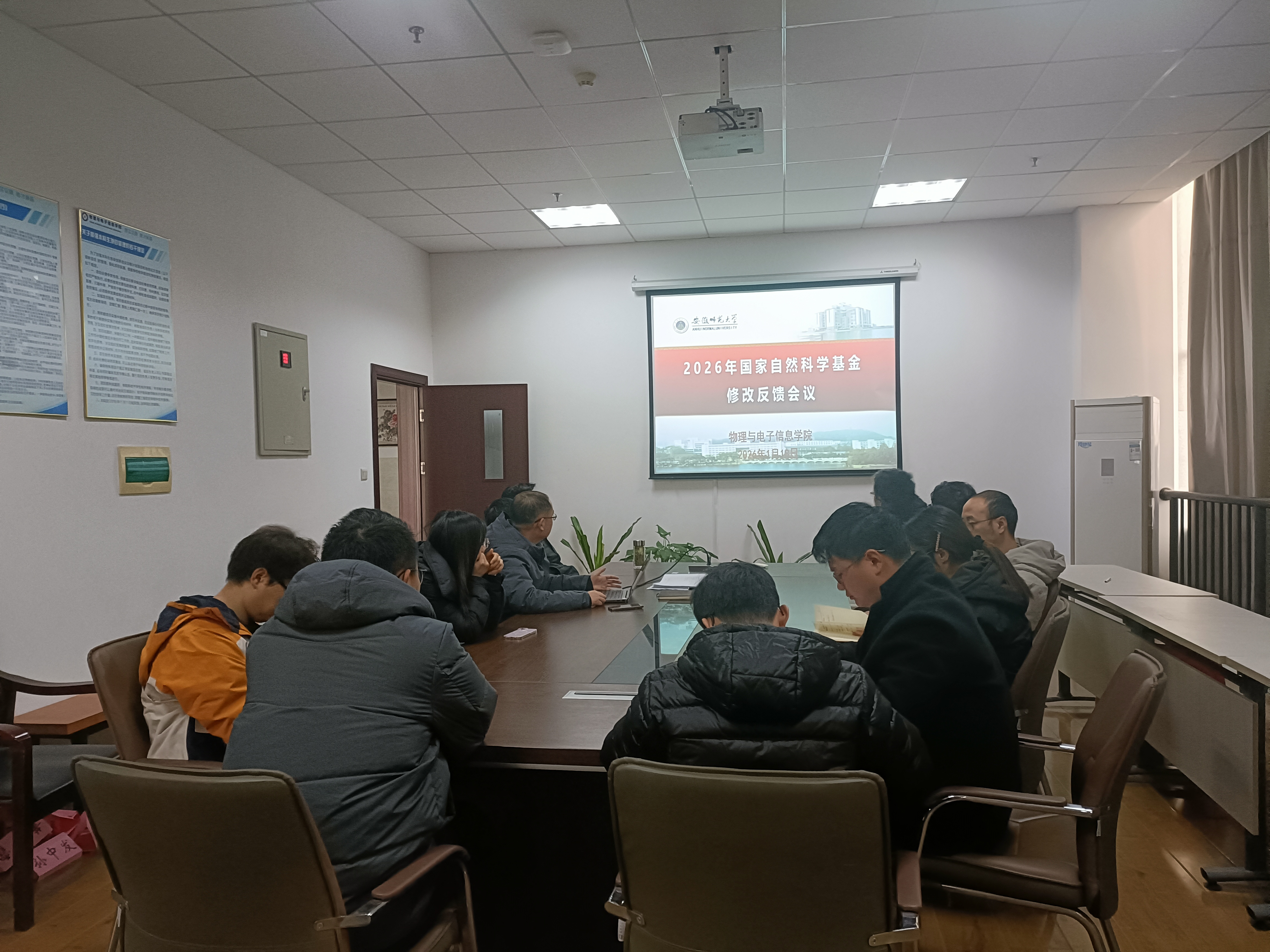 为切实做好2026年度国家自然科学基金项目申报组织工作,提升国家自然科学基金项目申报书质量,物理与电子信息学院于2026年1月18日下午在物理楼429会议室举行了国家自然科学基金项目申报辅导报告会。物电学院科研副院长盛晓伟、物电学院国家自然科学基金评审专家、2026年度国家自然科学基金青年C类项目申报人员参加了本次会议,会议由盛晓伟主持。
