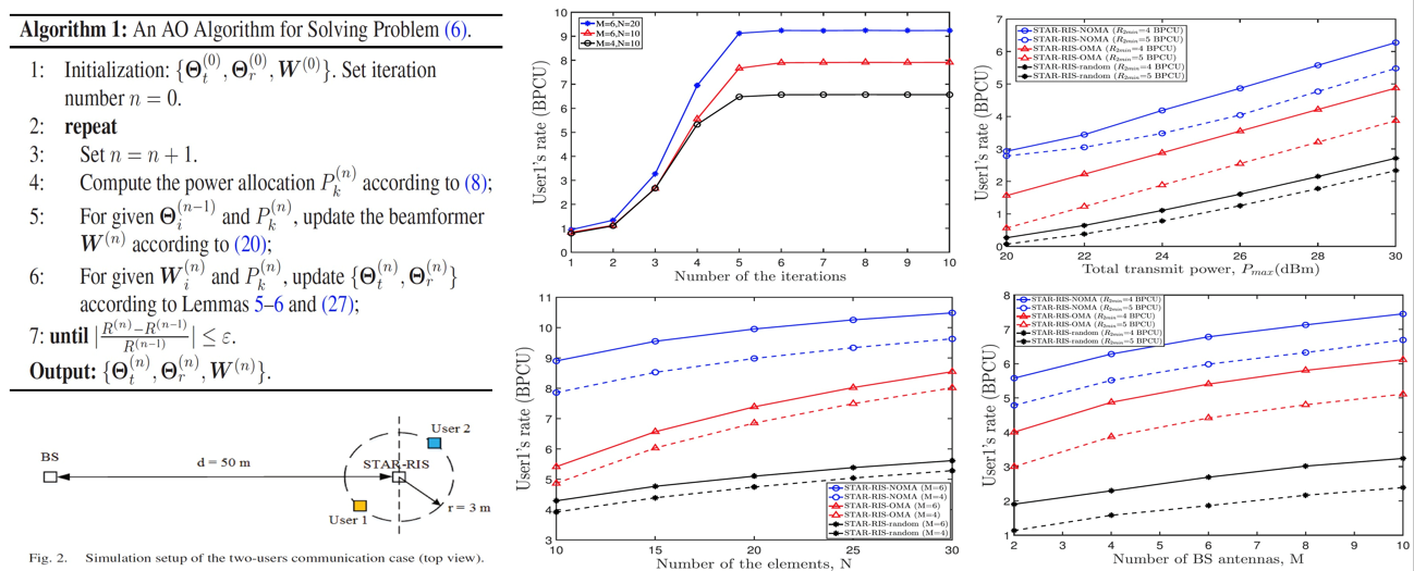 2. 考虑为异构需求的多用户提供传输服务,提出利用智能反射面辅助NOMA的传输策略,构建服务质量需求和能量限制等条件下的最佳传输方案,开发一种全新高效的优化求解协议。该方案传输性能远优于传统正交传输模式;且随着智能反射面数目增加,算法复杂度优势更加明显。[IEEE TVT, vol.74, 2025]