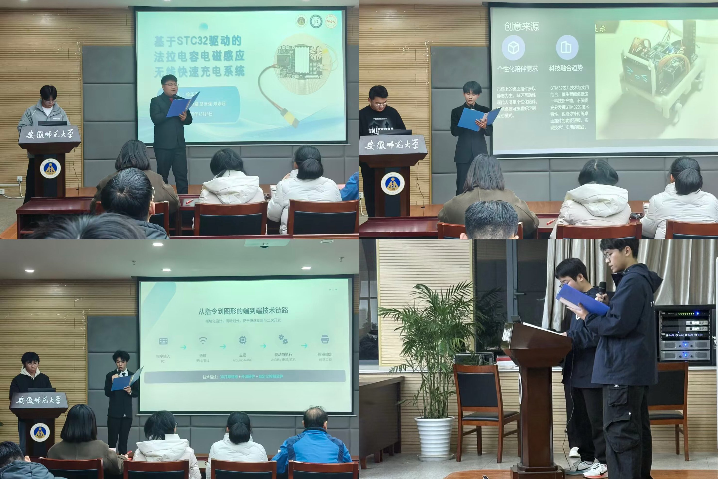 比赛过程中,各组选手通过材料分析、项目阐述与实物演示等多种形式,向评委和观众全面展示了他们的作品。从《飞檐走壁四轮车》《多功能手表》到《基于HSV识别算法的自主巡检球形机器人》,各类作品精彩纷呈,既展现了参赛选手的创新能力,也反映了我校科技人才培养水平的持续提升。选手们从容讲解设计理念、演示技术细节,现场互动热烈,掌声不断。