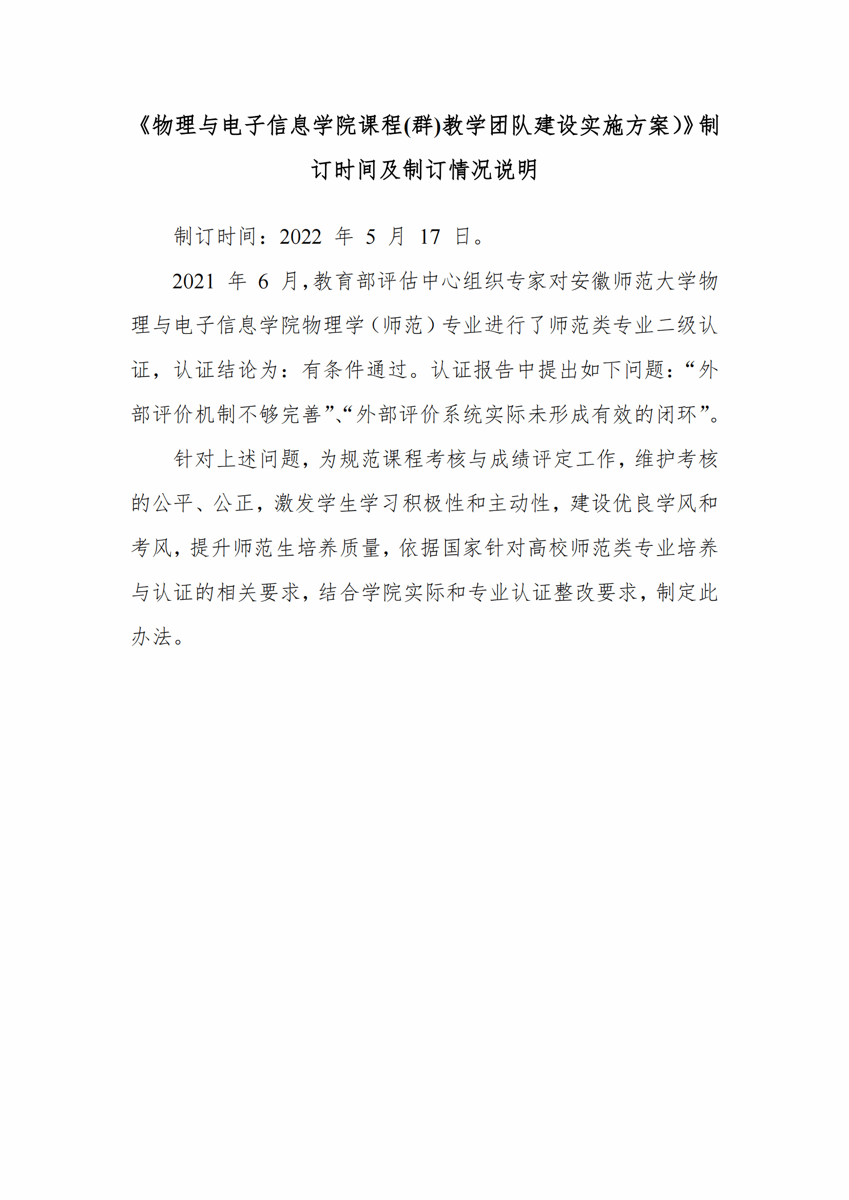《物理与电子信息学院课程(群)教学团队建设实施方案》及制订情况说明