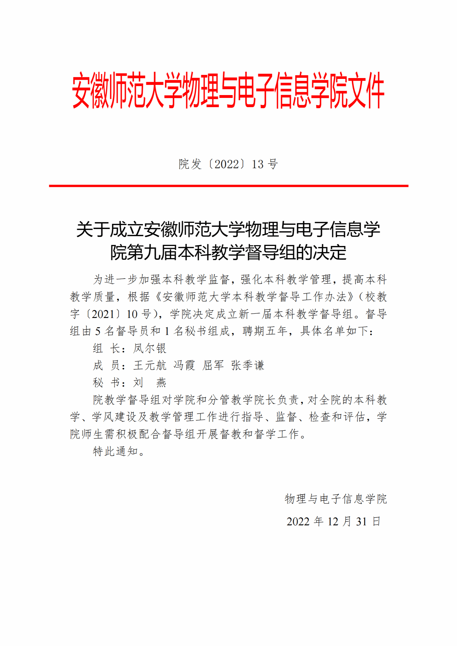 《关于成立安徽师大学物理与电子信息学院第九届本科教学督导组的决定(修订版)》及制订情况说明